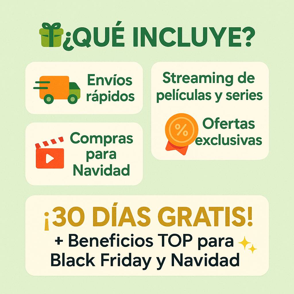 Aprovecha tu prueba gratuita de 30 días y obtén envíos rápidos, ofertas exclusivas y acceso a miles de películas, series, música y más durante la