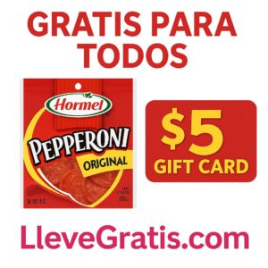Recibirás una tarjeta prepago digital de $5 gratis para un paquete de Hormel Pepperoni (o para lo que quieras usarla)